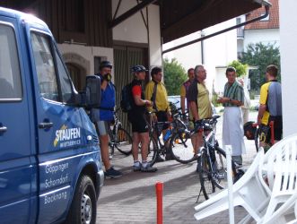 An dieser Stelle vielen Dank unseren Taxifahrern Joachim Langhammer und Joachim Straub, die uns mit Privatauto und MTW zum Treffpunkt chauffierten, sowie unserem Begleitteam Uwe Greiner, Rolf Schädler und Erwin Brückner, die für die Verpflegung auf der Strecke und den Fahrradtransport mit dem LKW der Spedition Stohrer sorgten.