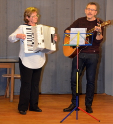 Nach der Begrüßung durch unseren Vorstand Karl Stohrer wurde vom Publikum gemeinsam mit den Guggasängern, begleitet von Wolfgang Appel an der Gitarre und von Monika Langhammer am Akkordeon zur Einstimmung ein Weihnachtslied gesungen.